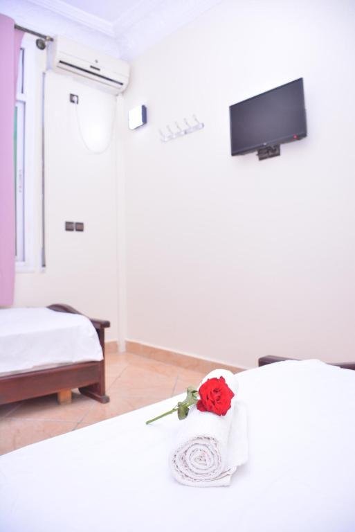 Parfaite pour les familles ou les groupes d’amis, la Chambre Quadruple offre un espace généreux et fonctionnel. Elle est équipée de quatre lits simples (ou deux lits doubles selon configuration), d’une salle de bain privative, de la climatisation, d’une connexion Wi-Fi gratuite, et d’une télévision à écran plat. Un hébergement confortable et pratique pour un séjour convivial à Errachidia.